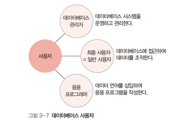 3. 응용 프로그래머: 프로그래밍 언어로 응용 프로그램을 작성할 때 DB에 접근하는 데이터 조작어를 삽입하는 사용자