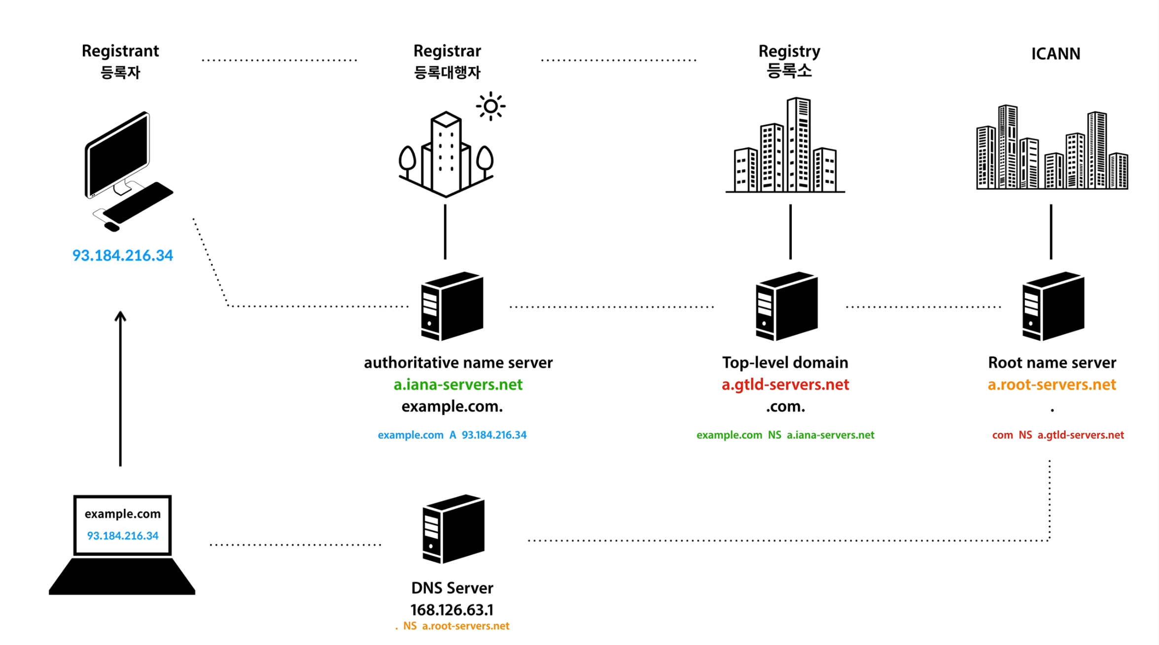 → 각 부분마다 독자적인 DNS server 컴퓨터가 존재한다.