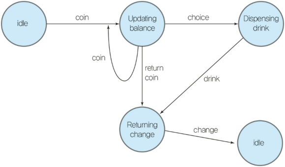 - 종착 상태(destination state) : 사건을 받은 후의 상태