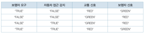 ① 상태 변화도에 표현된 정보를 테이블 형태로 표현한 것