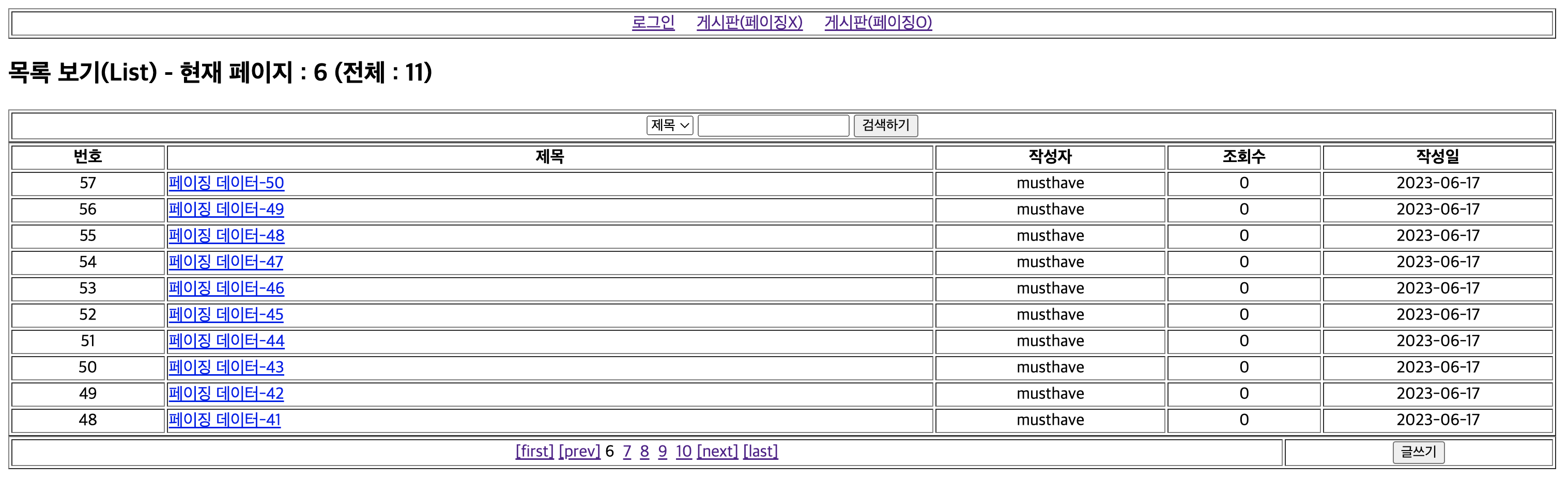 이번 장에선 지난 장에서 제작한 회원제 게시판에 페이징 기능을 추가했다.