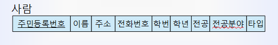 - 테이블의 각 행 = 투플(tuple)