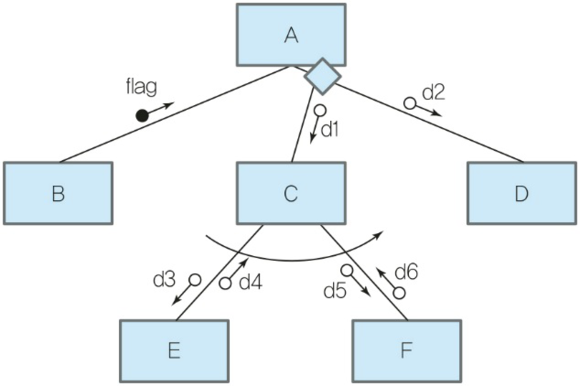 ③ 작은 원이 있는 화살표 : 모듈 사이의 정보 흐름