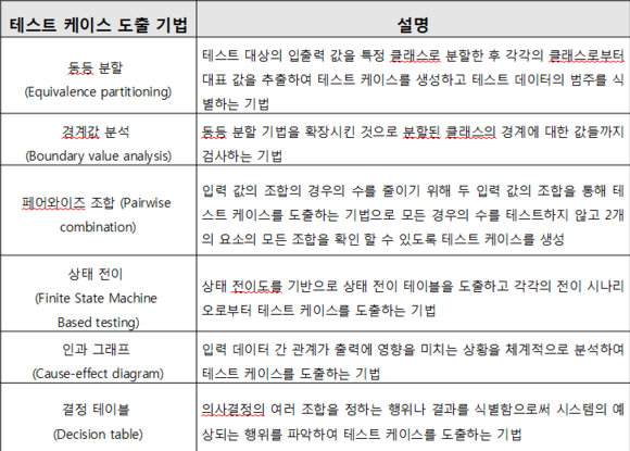 → 주로 블랙박스 테스트 기법에 사용