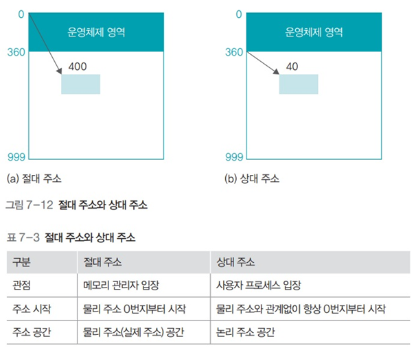 2) 상대 주소 : 사용자의 영역이 시작되는 번지를 0번지로 변경하여 사용하는 주소 지정 방식